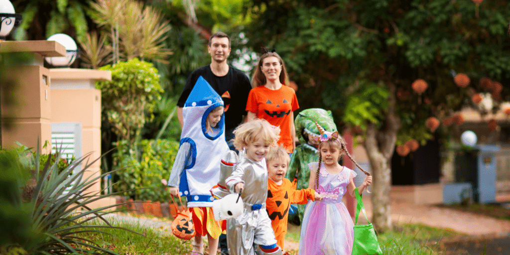 Of course, for this fall date idea, you’ll need costumes of your own. Plan on dressing up in kid-friendly costumes and going for a stroll around the neighborhood with the wee ones. Then, if you want to up the spooky factor, plan on watching a horror film together or hitting up a haunted attraction after returning the kiddos home.